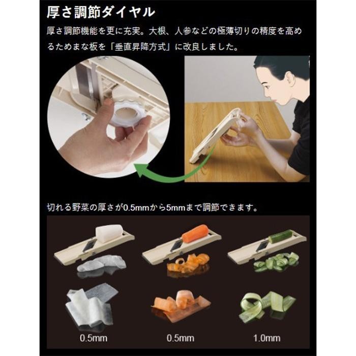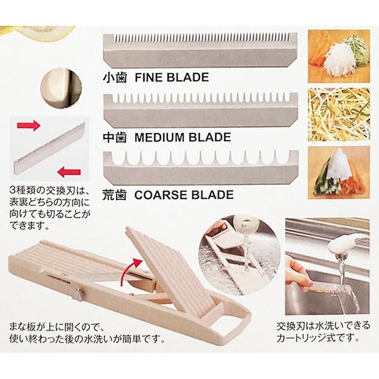 Product Description ?Experience professional-level results at home! Achieve time-saving cooking! The ?Benri-na? slicer boasts the ultimate sharpness.
