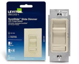 Leviton 6674-P0T Single Pole 3-Way 120V Slide Dimmer, Light Almond
