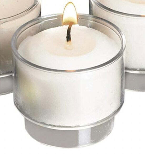 It is made of paraffin and palm wax. it is lightweight, shattered resistant. Is can easily be disposed, with no wax clean-up and smoke free.