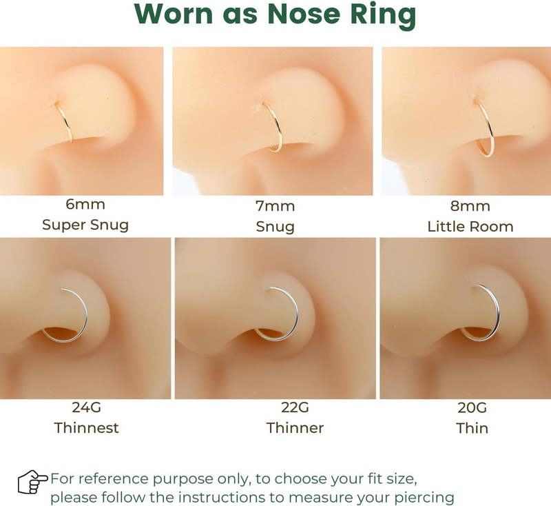 Model wear as cartilage earring, helix hoop earring, nose rings hoops,