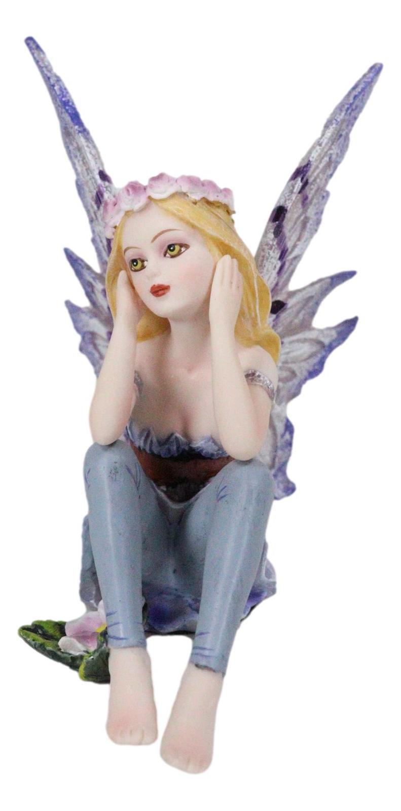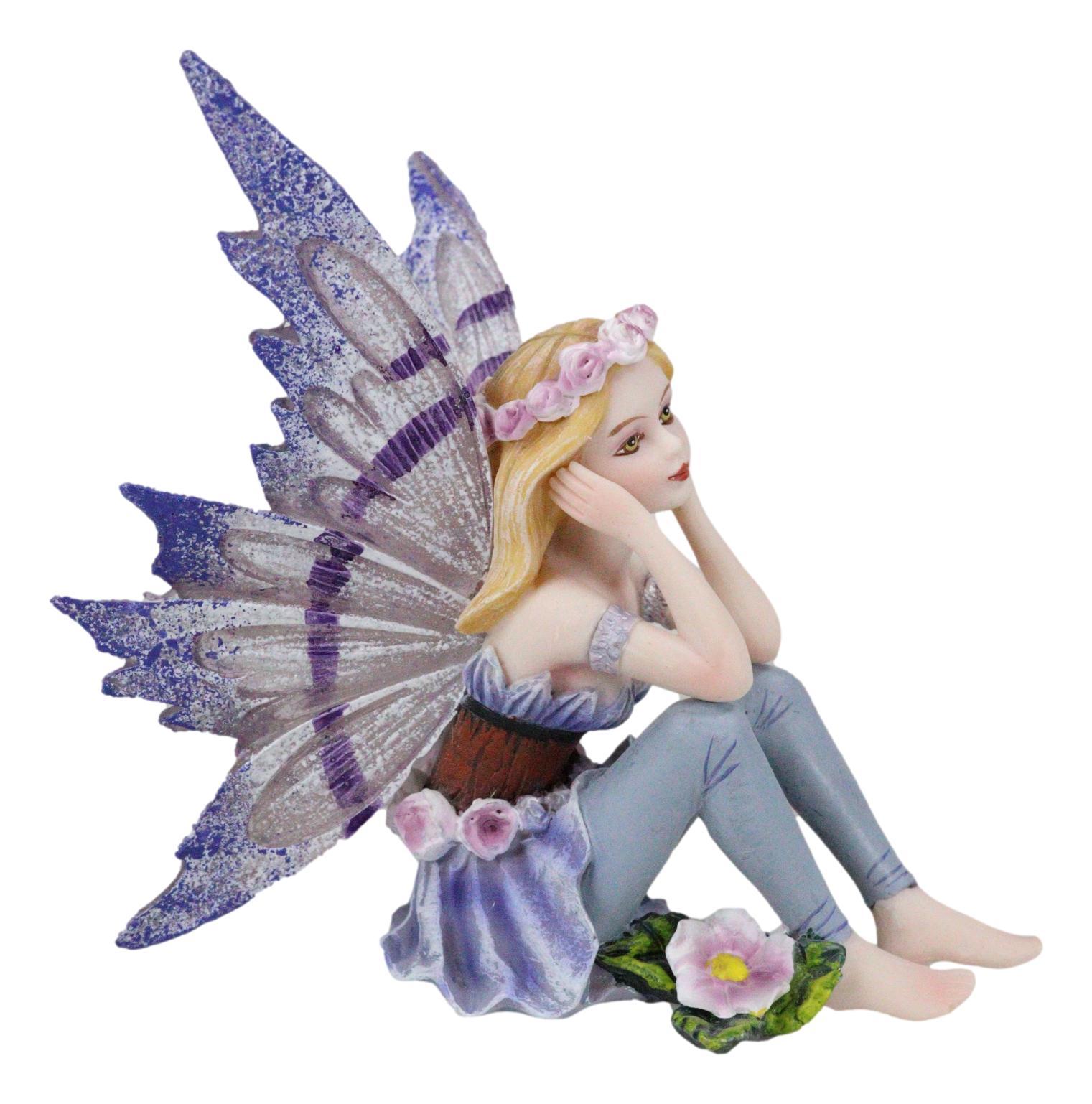 - Small Meadowland Tribal Purple Periwinkle Flower Girl Fairy Daydreaming Figurine