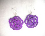SMALL PURPLE CUT OUT OPEN ROSE FLOWER WOODEN CHARM DROP EARRINGS