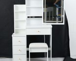 [Includes a padded dressing table stool]: The packaging includes a dressing table and a padded stool. You will no longer need to make additional purchases. This will greatly save you time and delivery cost.