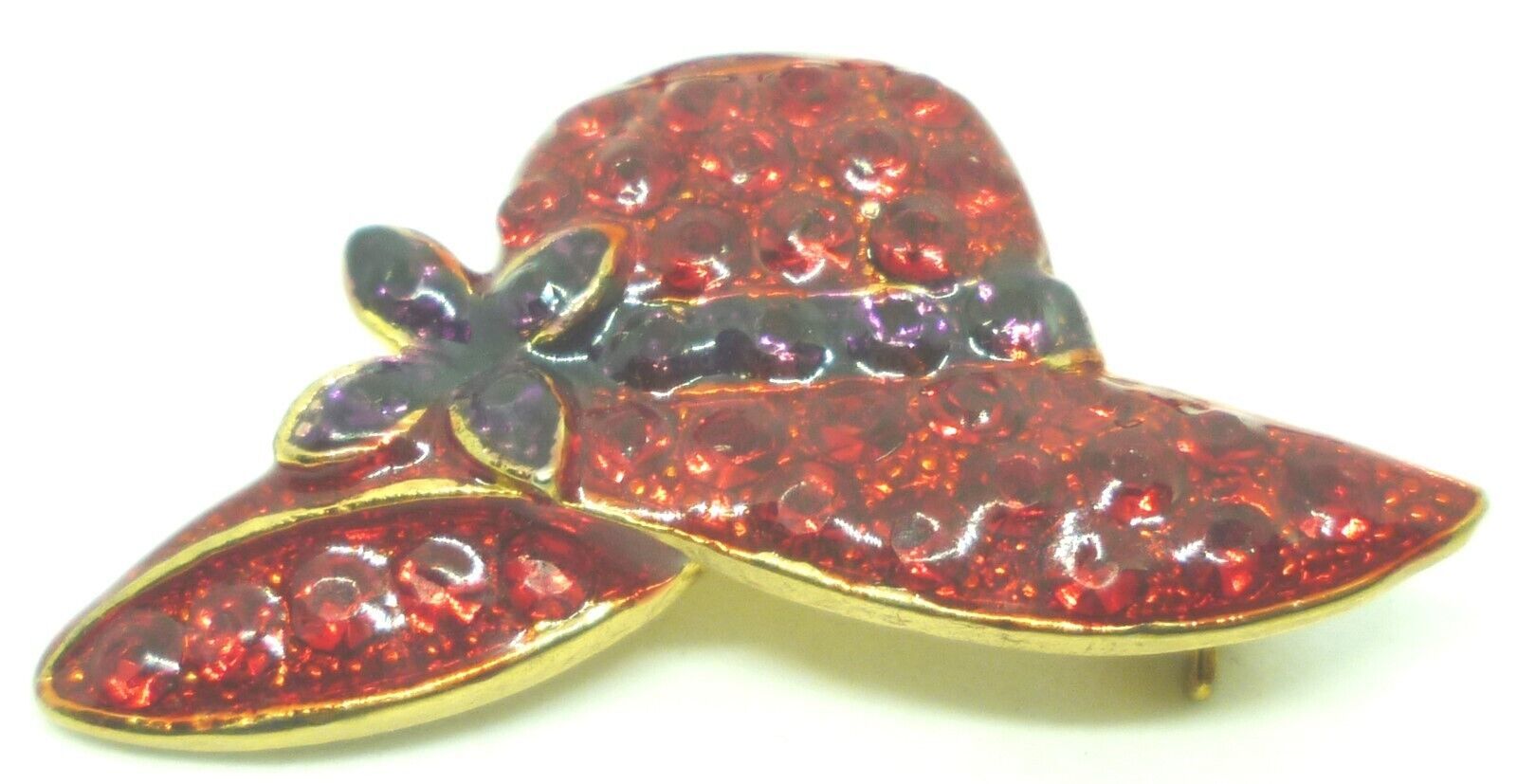 Primary image for SMALL SPARKLING RED HAT BROOCH PIN PENDANT