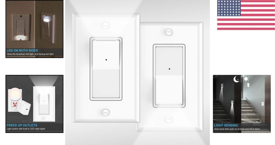 Primary image for Smart Illuminated Light Switch 3-Way, Easy Install with Dusk to Dawn Sensor