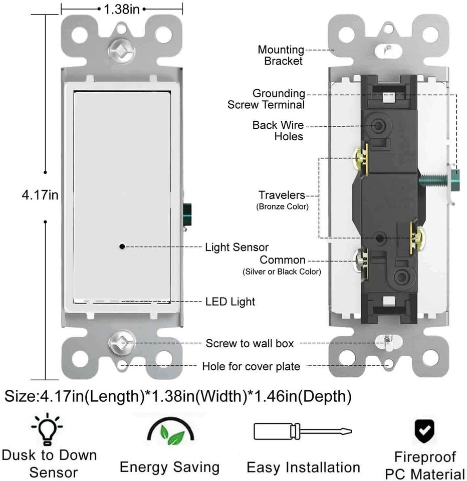 Smart Illuminated Light Switch 3-Way, Easy Install with Dusk to Dawn Sensor