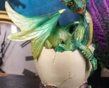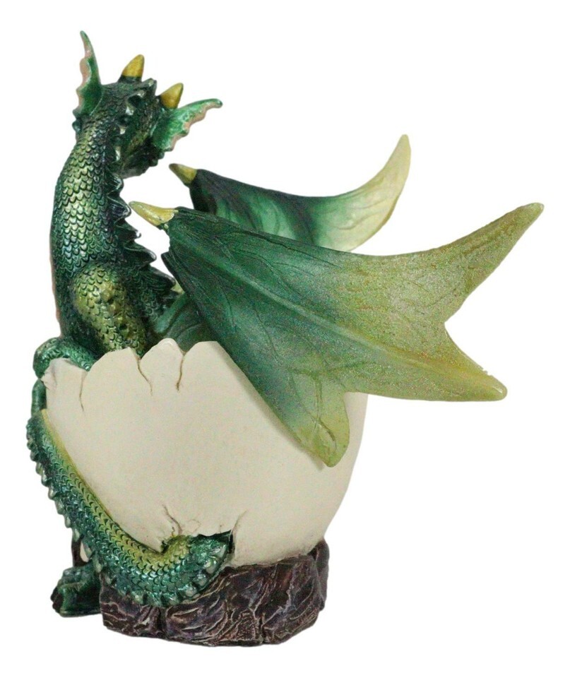 - Smiling Green Baby Dragon Hatchling Emerging From Egg Sculpture Collectible