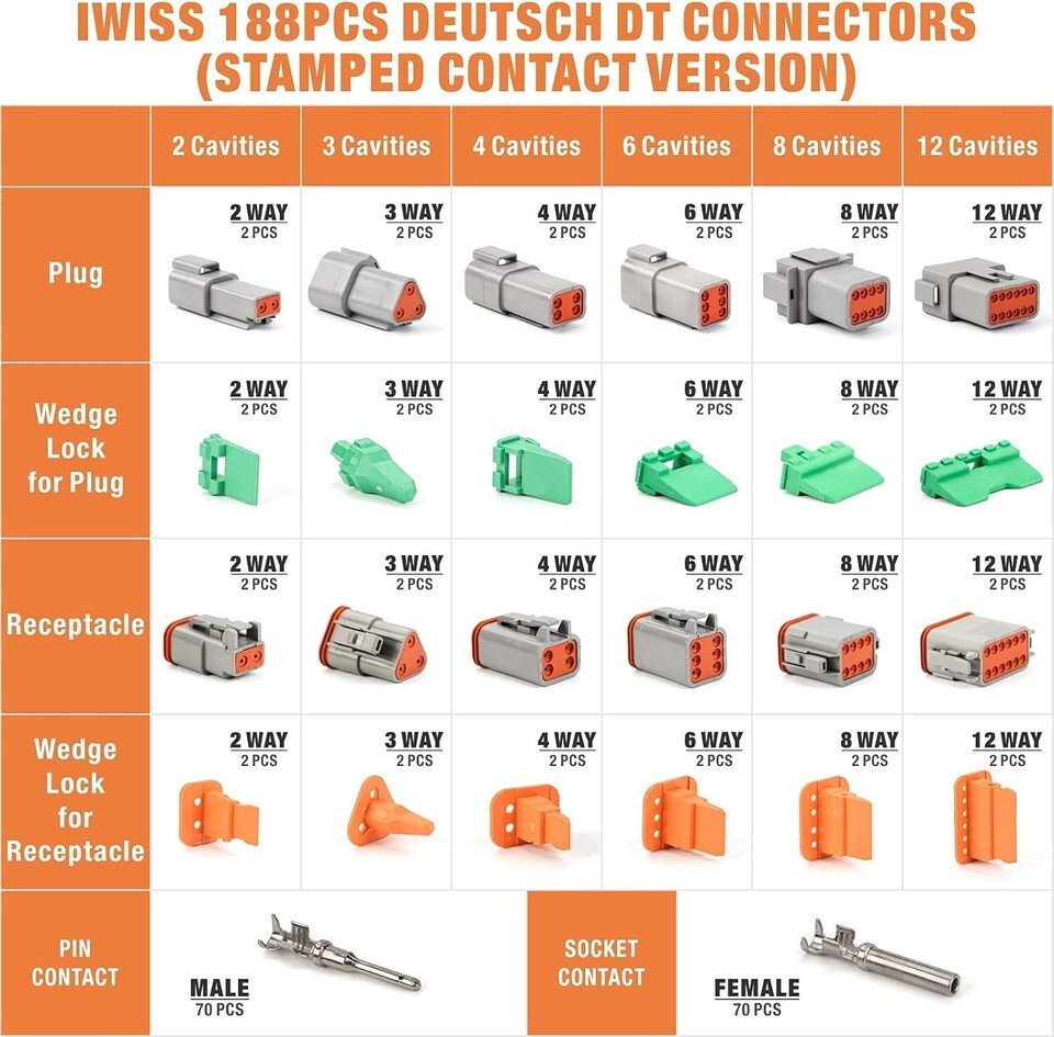 - Smooth Installation with 188 Piece Deutsch DT Connector Kit - Pin Terminals