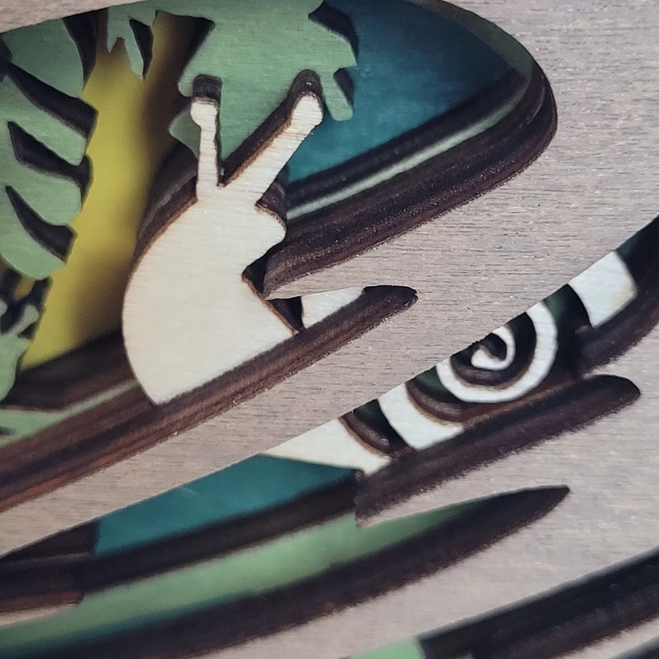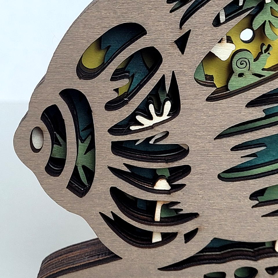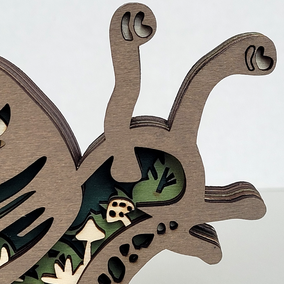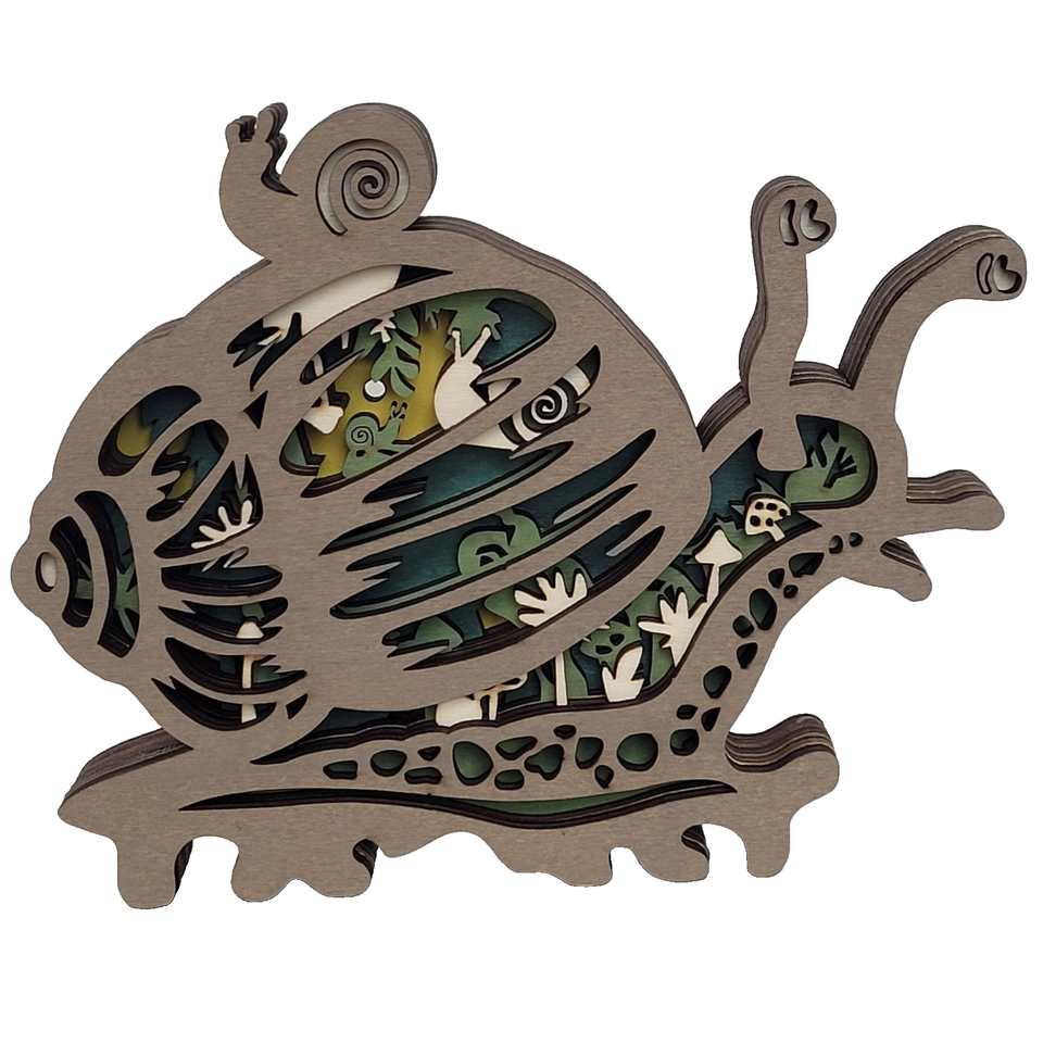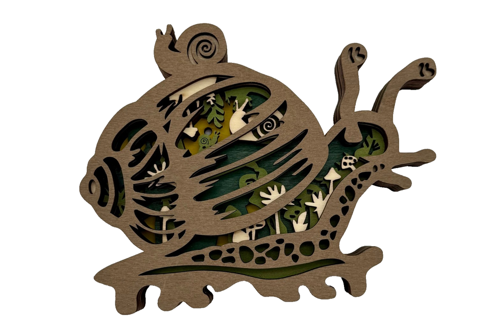 Snail Handcrafted Layered Wood Art Measures About 7" x 5" x 1" Celebrate the beauty of simplicity and patience with the Snail?a charming and peaceful addition to your space that reminds us to slow down and enjoy the journey. Embrace the quiet beauty of nature with the Snail, a meticulously handcrafted layered wood art piece that highlights the charm and elegance of this slow-moving wonder. Carefully designed in Colorado, this artwork features multiple layers of precision-cut sustainable wood, forming a mesmerizing 3D effect that brings the snail?s delicate spiral shell and graceful form to life. With earthy, natural wood tones and smooth, flowing curves, the Snail evokes a sense of tranquility and patience, making it a unique addition to any nature-inspired, minimalist, or whimsical decor. Whether displayed in a cozy reading nook, a serene garden-themed space, or as a symbol of perseverance and mindfulness, this piece invites a sense of calm and appreciation for life?s small yet beautiful moments. Crafted with sustainability and artistry in mind, this eco-conscious piece is perfect for those who love nature?s subtle elegance and the wonders of the slow and steady. Key Features: Handmade, ensuring each piece is truly one-of-a-kind. Constructed from premium sustainable wood for durability and eco-friendly craftsmanship. Intricate layered design creates a stunning 3D effect. Warm, natural wood tones complement a variety of interior styles. Ideal for nature lovers, garden enthusiasts, or those who appreciate mindful, symbolic art.