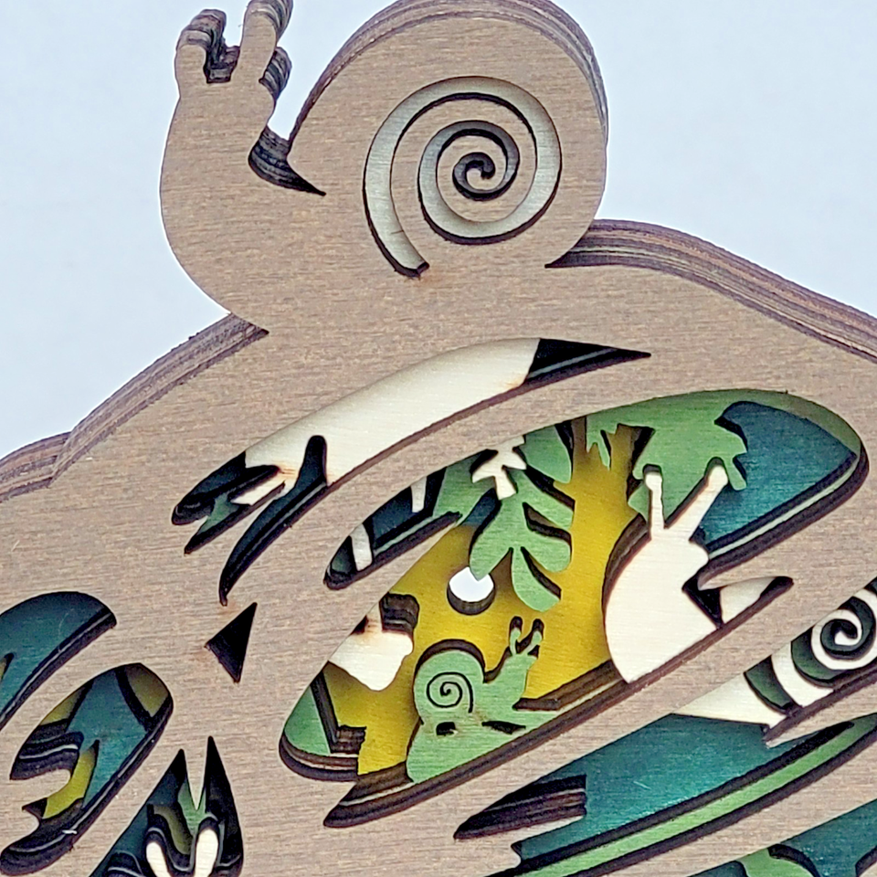 Snail Handcrafted Layered Wood Wall Art Shelf 3D Scene Laser Cut Handmade US