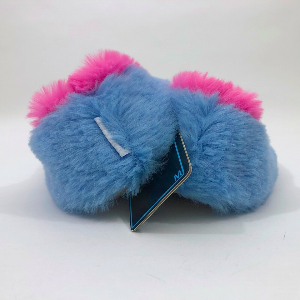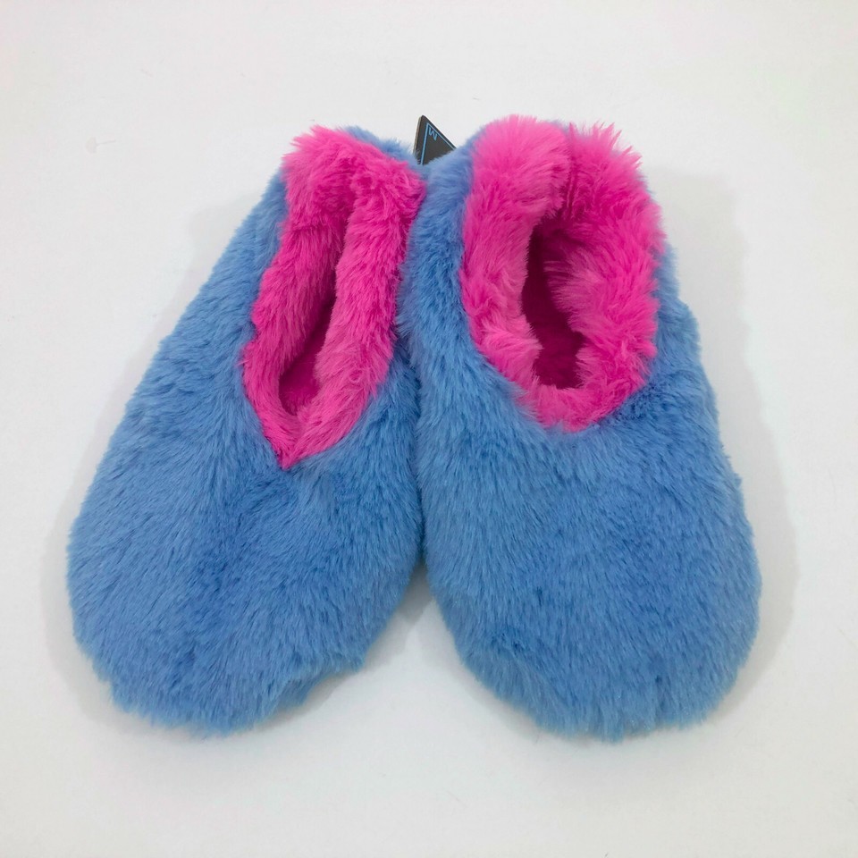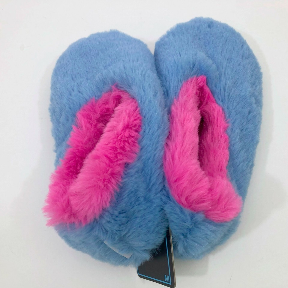 Snoozies Fuzzy Blue & Pink Slippers Non Skid Child Size M 2-3