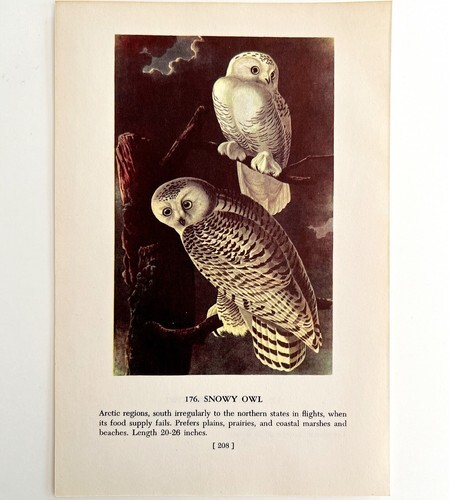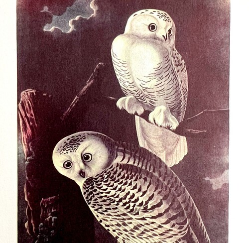Snowy Owl Bird Lithograph 1950 Audubon Antique Art Print DWP6B