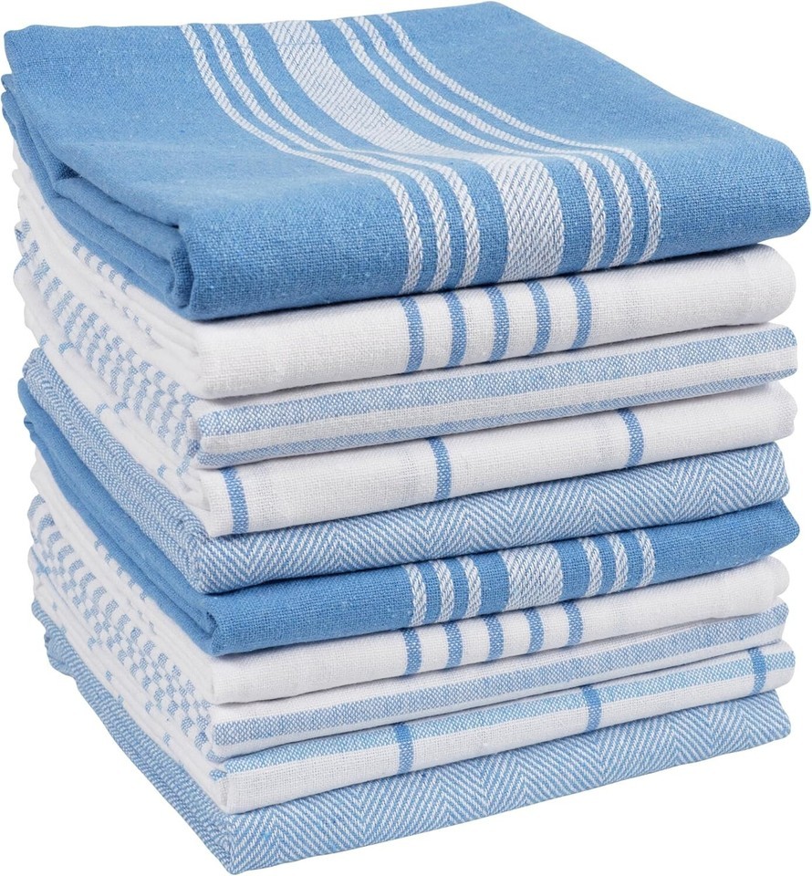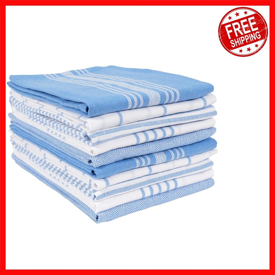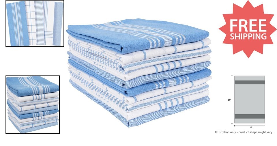 - Soft & Absorbent 18x28 Kitchen Towels - Set of 10 French Blue Geometric Design