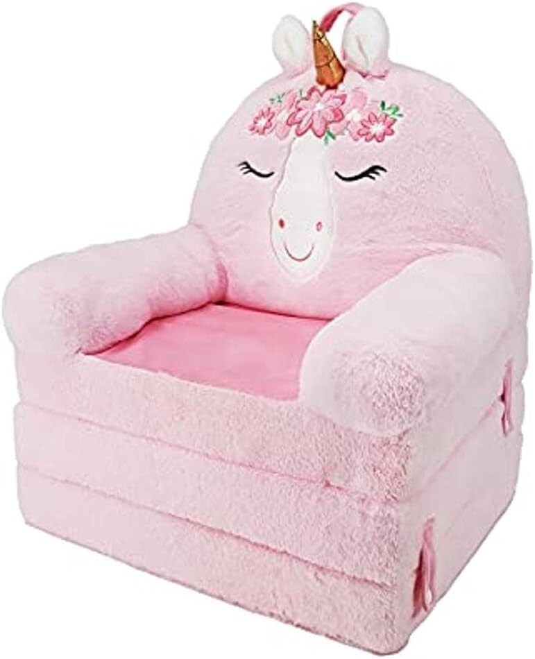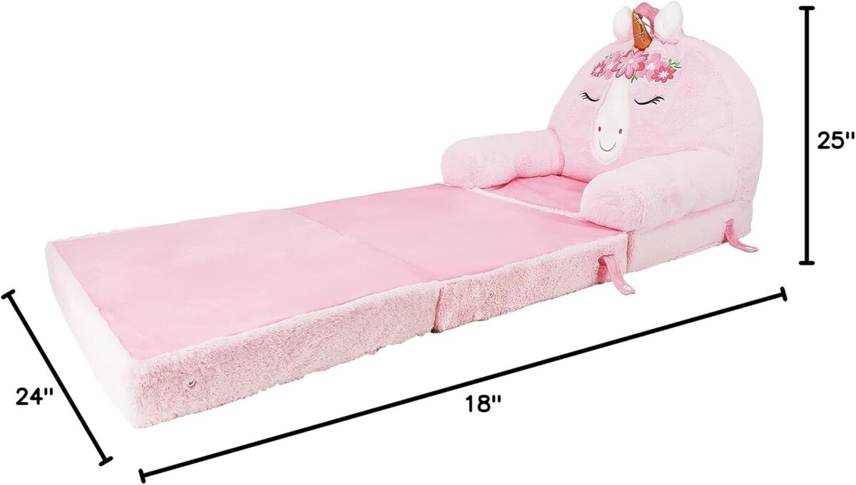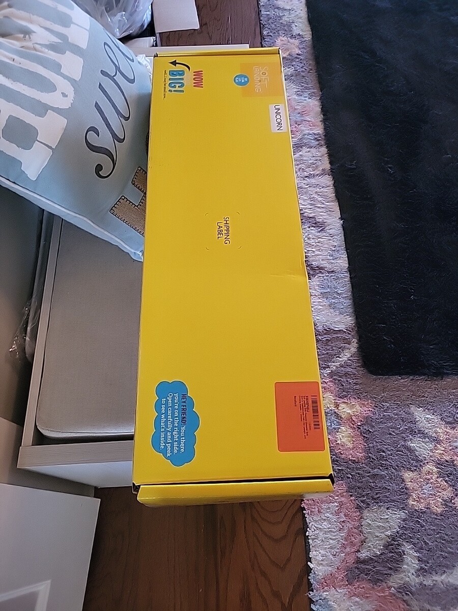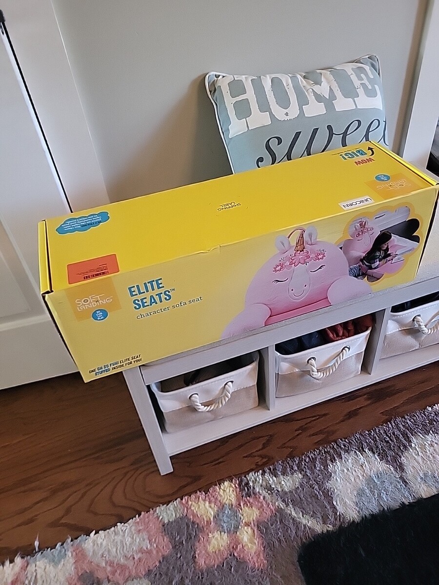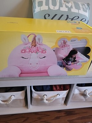 Brand new in the Box! Soft Landing - Elite Seats - Premium Character Sofa Seat Transformable Fold-Out Lounger with Carrying Handle - Unicorn FEATURES: MAGICAL SURPRISE: It?s all in the unboxing experience! You won?t believe that we squeezed this sofa lounger chair into this tiny box until you see it for yourself! Once it?s out of the bag, follow the simple instructions listed on the insert and it will begin to PUFF-UP, but be patient, it may take a bit for your Elite Seat to reach its full size! EASY 3-STEP COMPRESED TO PUFF: Comes with an interactive insert with an easy 1-2-3 step guide on making sure your new Elite Seat reaches its full PUFF-tential once removed from its itty-bitty box! Also includes cut-out props for that perfect photo-op! JUST A QUICK SNAP: Use as a soft seat or with a few quick snaps unfold to transform your buddy into a super comfy lounger! LONG LASTING: These sturdy seats are so durable even adults can?t resist a little lounge time. DIMENSIONS: Sofa Seat: 18?D x 24?W x 25?H; Lounger: 55?D x 24?W x 18?H GREAT ITEM AT A GREAT PRICE!!