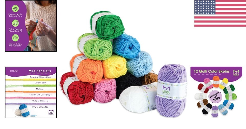- Soft & Sturdy Multi-Colored Yarn Set for Beginners - 12 Skeins + 7 Craft Ebooks