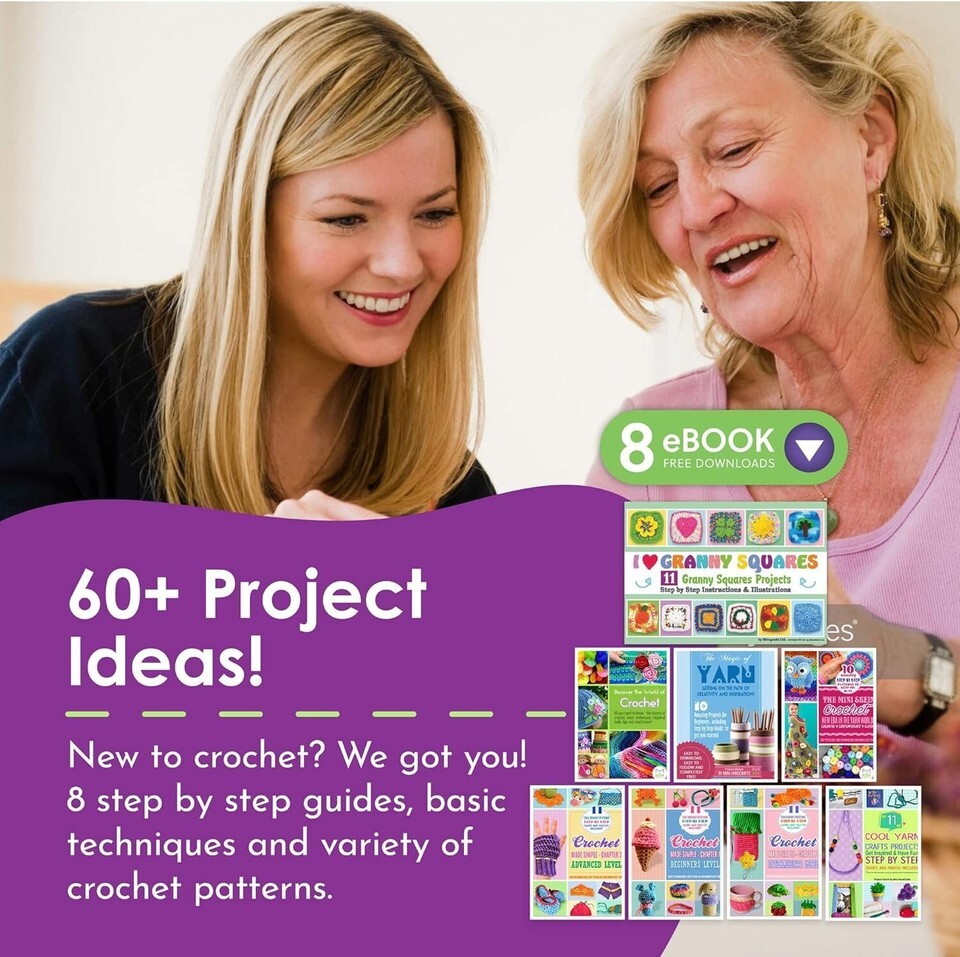 Whether you're a novice or a seasoned crafter, this yarn set offers the perfect blend of durability, vibrancy, and versatility. The assortment of colors ensures your creations shine boldly, allowing you to express your creativity in every stitch. With eBooks included, you'll have access to a plethora of inspiring projects designed for all skill levels.