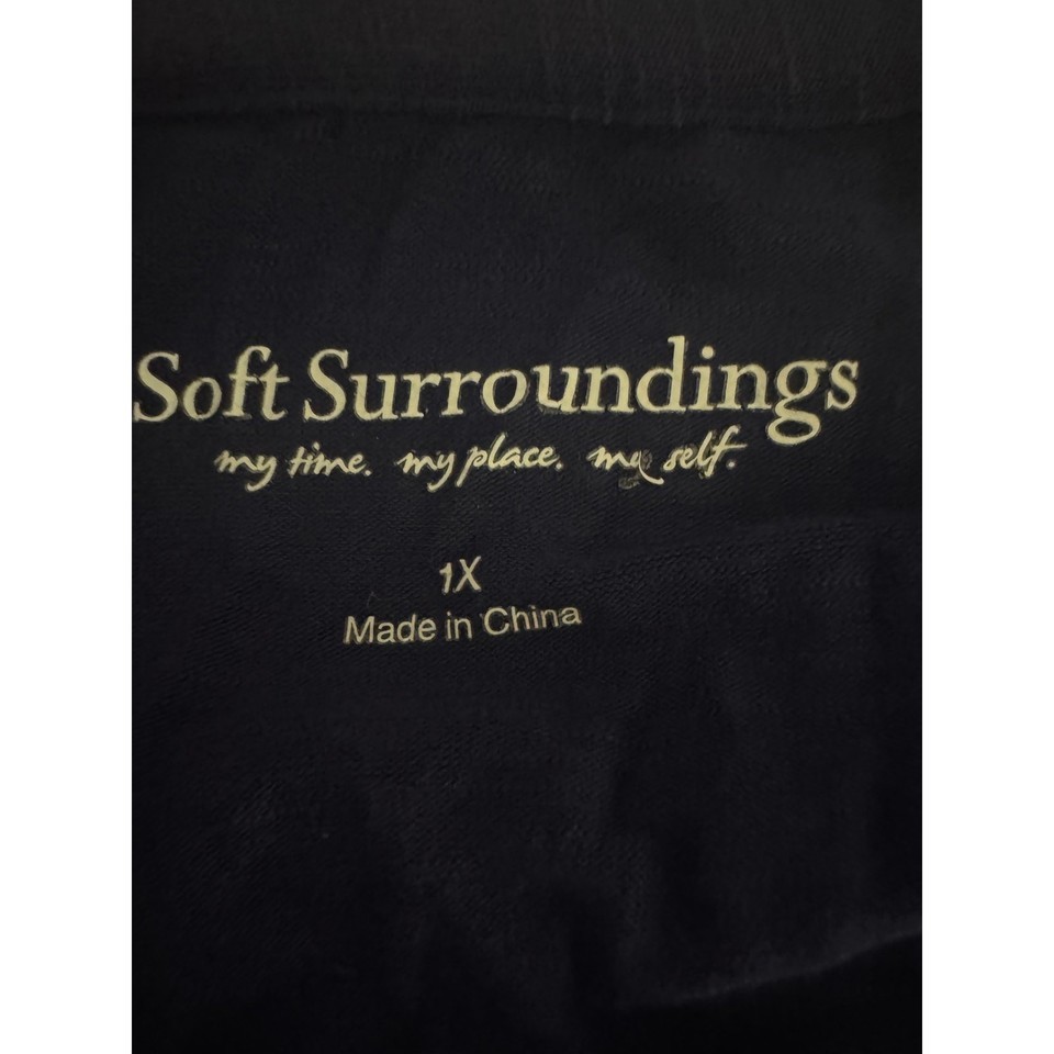 Effortlessly chic and breathable, this Soft Surroundings sleeveless tunic features a relaxed swing silhouette in a deep navy blue. Made from a soft and stretchy blend of 95% viscose and 5% spandex, it offers a flattering drape with a V-neckline and vertical front seam for added shape. Perfect for layering or wearing solo through warm seasons. Brand Soft Surroundings Condition Gently used ? excellent condition, no visible flaws Primary Color Navy Blue Style Swing Tunic Tank Top