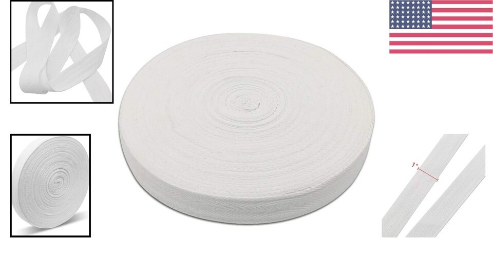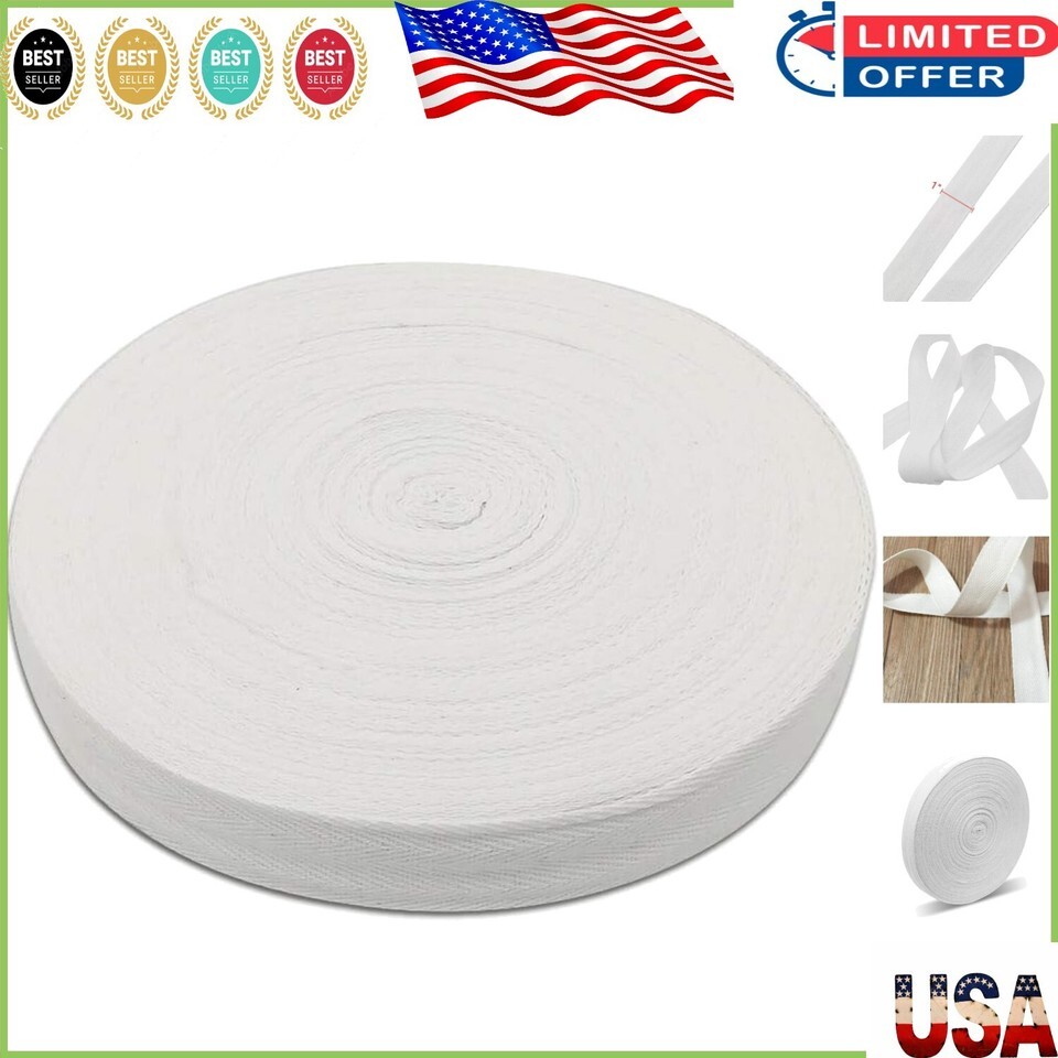 Soft White Cotton Herringbone Tape - 50 Yards x 1 Inch for Dressmaking Bunting