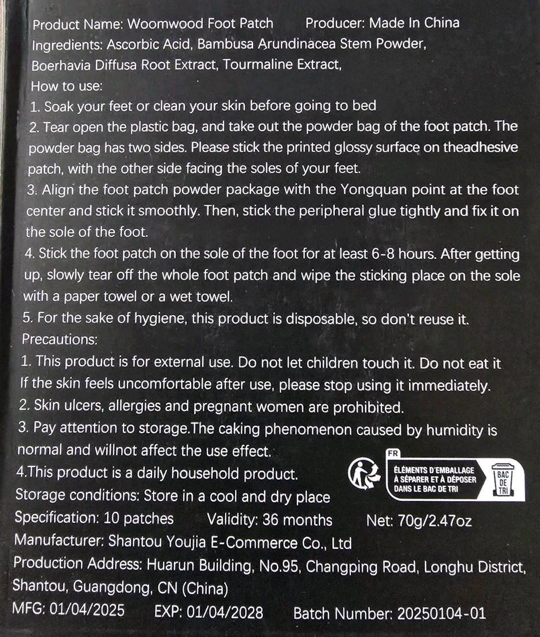 This Sale is For One (1) Box of Wormwood Detox Foot Patches
