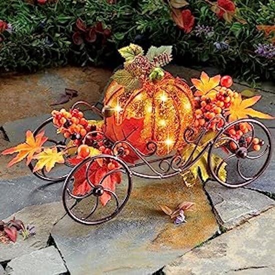 - Solar Lighted Pumpkin Stage Coach Wagon Thanksgiving Halloween Fall Home Decor