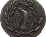 Questo medaglione visivamente accattivante e una ristampa moderna ispirata alla monetazione classica dell'antica citta cipriota di Soloi, un centro di spicco durante il periodo ellenistico e romano. Il dritto presenta un leone di profilo, che avanza con sicurezza, un motivo associato a forza, nobilta e simbolismo solare. Sopra il retro appare un simbolo radioso del sole, un emblema raro e potente che probabilmente rappresenta la luce divina di Helios, il dio del sole o i più ampi culti solari che erano popolari in tutto il Mediterraneo orientale. Alla sua destra, la chiara iscrizione "???" denota la citta di Soloi, rafforzando l'origine culturale del medaglione e l'identita politica della citta-stato conio.Il rovescio mostra un'aquila stilizzata all'interno di una corona di alloro, simbolo di autorita divina, vittoria e legittimita, spesso legata allo stesso Zeus. L'aquila che stringe un serpente puo essere una sottile allusione alla lotta divina tra ordine e caos, un tema frequente nell'arte religiosa e civile ellenistica. La corona di alloro circostante non e solo decorativa; denota il trionfo, il favore degli dei e la santita dell'autorita emittente. Questo pezzo e un incapsulamento elegante e simbolico della cosmologia ellenistica e dell'orgoglio civico, offrendo una ricca miscela di iconografia religiosa e identita statale in un formato splendidamente colpito ideale per i collezionisti con un apprezzamento per l'antico patrimonio mediterraneo.