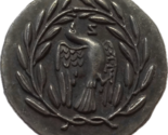 Este medallon visualmente llamativo es una reedicion moderna inspirada en las monedas clasicas de la antigua ciudad chipriota de Soloi, un centro prominente durante los períodos helenístico y romano. El anverso presenta un leon de perfil, caminando con confianza hacia adelante, un motivo asociado con la fuerza, la nobleza y el simbolismo solar. Sobre su parte posterior aparece un símbolo de sol radiante, un emblema raro y poderoso que probablemente representa la luz divina de Helios, el dios del sol o los cultos solares mas amplios que fueron populares en todo el Mediterraneo oriental. A su derecha, la inscripcion clara "???" denota la ciudad de Soloi, reforzando el origen cultural del medallon y la identidad política de la ciudad-estado acuñadora. El reverso muestra un aguila estilizada dentro de una corona de laurel, un símbolo de autoridad divina, victoria y legitimidad, a menudo vinculada con el propio Zeus. El aguila agarrando una serpiente puede ser una sutil alusion a la lucha divina entre el orden y el caos, un tema frecuente en el arte religioso y cívico helenístico. La corona de laurel circundante no es meramente decorativa; denota triunfo, favor de los dioses y la santidad de la autoridad emisora. Esta pieza es una encapsulacion elegante y simbolica de la cosmología helenística y el orgullo cívico, que ofrece una rica mezcla de iconografía religiosa e identidad estatal en un formato bellamente acuñado ideal para coleccionistas con una apreciacion de la antigua herencia mediterranea.