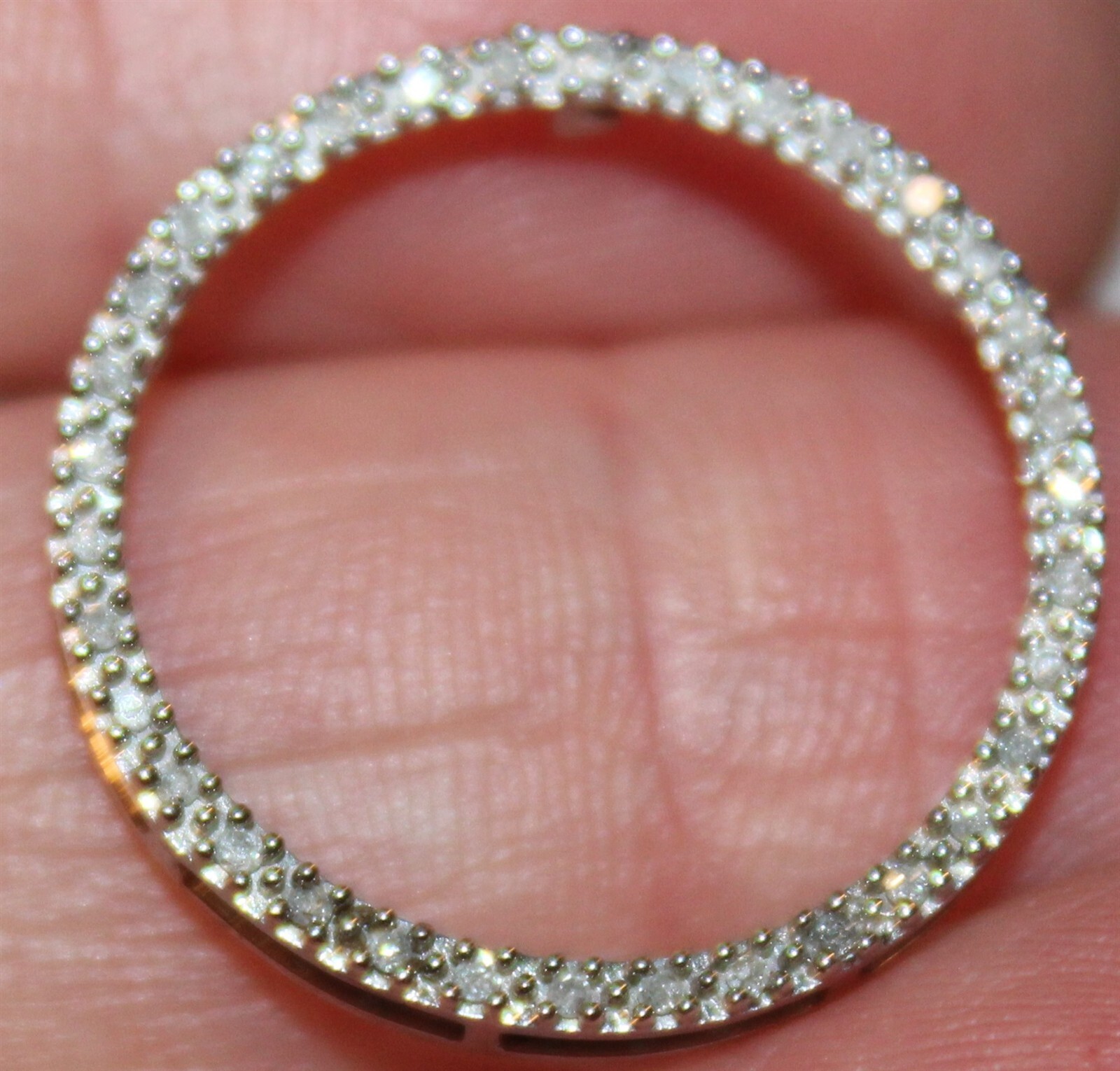 - Solid 10K white gold marked 10K clear gemstones circular pendant