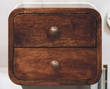 - Solid Walnut Wall-Mounted Bedside, Mini Curved, 2-Drawer, Brown