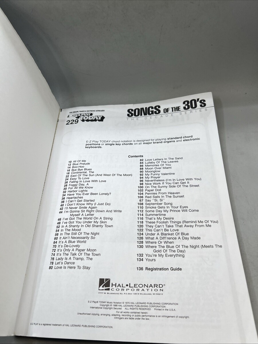 - Songs of the 30's Song Book - The Decade Series by Hal Leonard