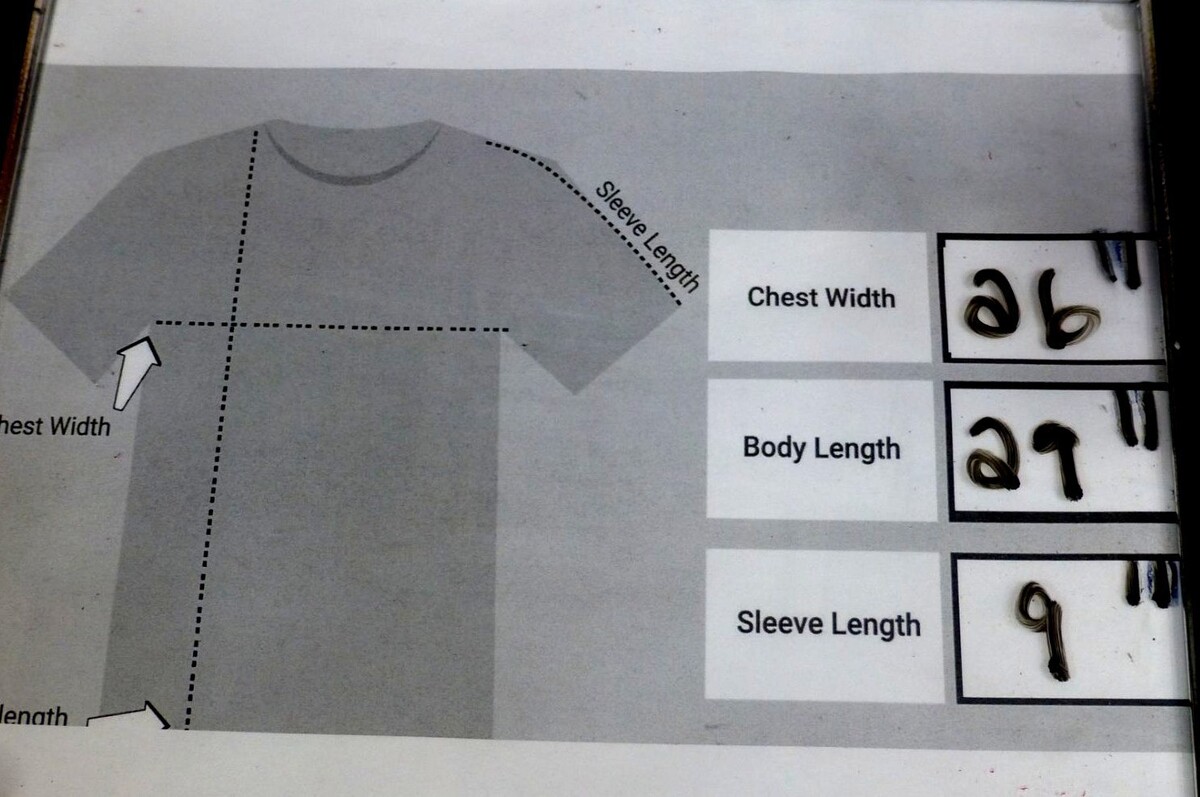 Chest Width = 26 Inches, Body Length = 29 Inches, Sleeve Length = 9 Inches