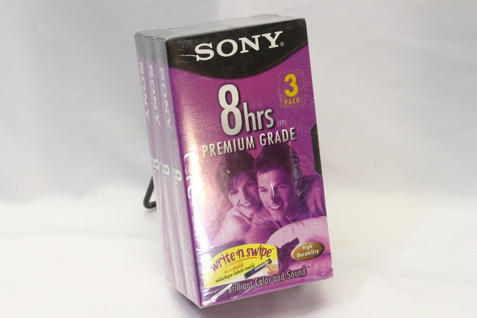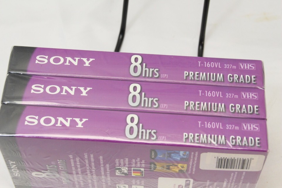3 Pack Sony 8 Hour EP VHS Tape T-160 Premium Grade Blank NEW SEALED