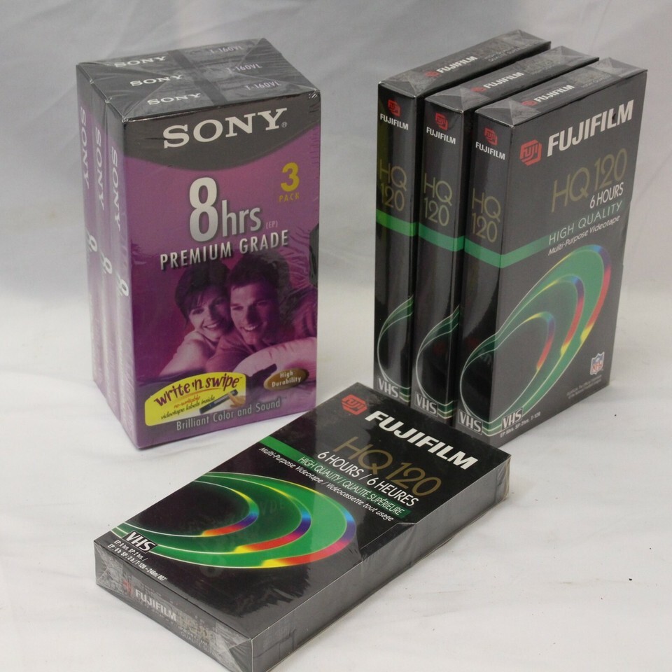 - Sony 8 Hour EP VHS 3 & Fujifilm HQ 120 4 Blank VHS Tapes Video Cassette SEALED