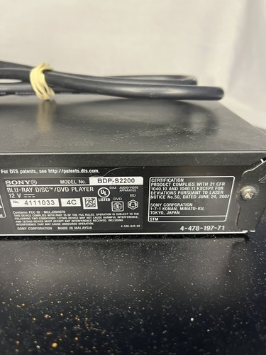 Sony BDP-S2200 Blu-ray DVD Player WiFi Streaming HDMI w Power Cable No Remote