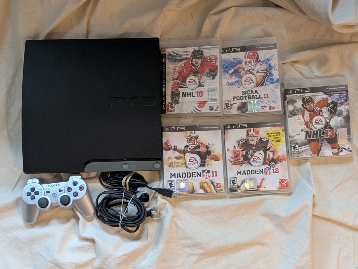 - Sony PlayStation 3 PS3 Slim 120GB Console Bundle 5 Games 1 Controller Working
