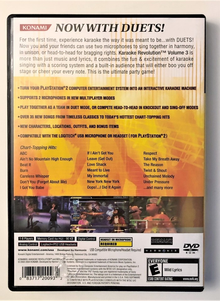 Sony Playstation 2 PS2 Karaoke Revolutions Volume 3 Singing Video Game Konami