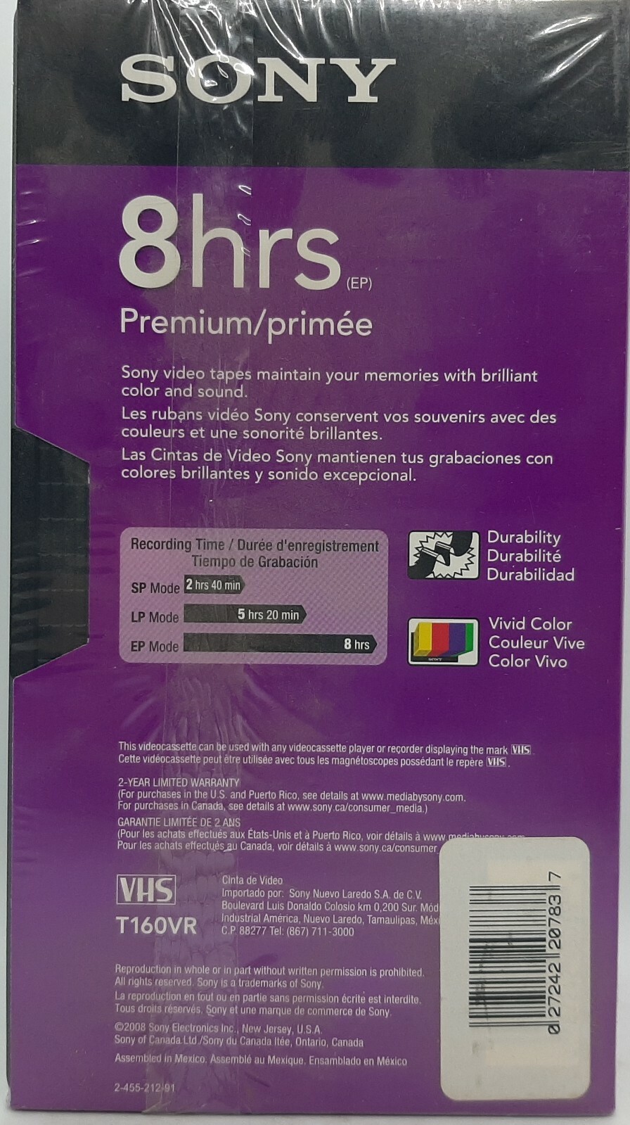 - SONY Premium VHS 8 Hour T160VR Tapes 4-pack