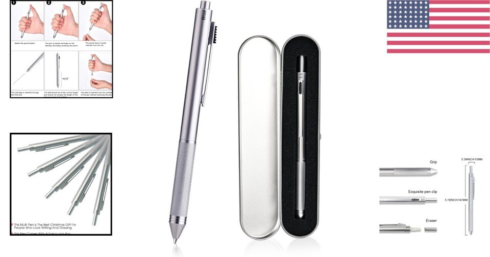 Sophisticated 4-in-1 Retractable Multifunction Pen with Gift Box - Silver Luxury ? ? ? ? ? ? ? ? ? ? ? ? ? ? ? ? ? ? Sophisticated 4-in-1 Retractable Multifunction Pen With Gift Box - Silver Luxury Features: 4-in-1 multicolor pen with an elegant metal casing and engraved grip for superior comfort. Includes three ballpoint pens in black, red, and blue, along with a 0.5mm mechanical pencil. Well-balanced weight ensures smooth writing experience, making it perfect for both professional and personal use. Available in five exquisite metal shell colors to suit your style. Designed with a retractable feature for convenience, while the luxurious appearance speaks to your sophisticated taste. Compatible with replaceable quad point pen refills and D1 compatible ballpoint pen refills for added convenience. Benefits: Enhance your writing experience with this all-in-one tool?effortlessly switch between colors and pencil. Perfect for gifting, presented in an elegant gift box to leave a lasting impression. Stylish design adds a touch of luxury to your desk or corporate gift selection. The durable construction guarantees longevity while maintaining a smart and sophisticated look. Receive personalized assistance from a dedicated team, ensuring your satisfaction is our top priority. Why choose our Multifunction Pen? Are you looking for the perfect pen that combines style, functionality, and luxury? Look no further than our Sophisticated 4-in-1 Retractable Multifunction Pen. Its sleek design is not only visually appealing but also provides an exceptional writing experience. Whether you're taking notes in a meeting, sketching ideas, or signing important documents, this versatile pen rises to any occasion. Indulge yourself or treat someone special with a gift that reflects elegance and practicality. Order your Multifunction Pen today and elevate your writing experience to a new level of sophistication! Shipping Free Fast Shipping - We offer free shipping to most of the USA with a normal delivery time of 3-7 days. However, due to the current situation, additional delivery time (up to 3 weeks) may be required for some items. Alternative Carriers - We may use alternative carriers (e.g. USPS, FedEx, UPS, etc.) to ensure your package arrives safely and on time. Due to the use of multiple carriers, we are unable to provide a tracking number automatically. Handling Time - Orders are processed and shipped within 1-2 business days of receiving cleared payment. Shipping Restrictions - Shipping to Alaska, Hawaii, Puerto Rico, Guam, and other US territories may incur shipping charges or delivery restrictions. Please contact us before ordering, or your order can be refunded/cancelled. State Restrictions - There may be restrictions based on your state of purchase. For example, certain items may not be shipped to California due to state regulations. Contact for Tracking Updates - If you require tracking updates or have any concerns about the delivery of your order, please feel free to contact us, and we will be happy to assist you. Return 30-Day Hassle-Free Returns - We want you to be completely satisfied with your purchase. If you are not, you can return the item within 30 days of receiving it for a full refund or exchange. Easy Return Process - To start a return, simply contact us and we will provide you with a prepaid return shipping label and detailed instructions. Restocking Fee - There are no restocking fees for returns. However, the buyer is responsible for return shipping costs if the return is not due to a seller's error. Refund Processing Time - Refunds will be processed within 5 business days of receiving the returned item in its condition. Payment We accept all major credit cards, PayPal, and Apple Pay for your convenience. Your payment information is secure and encrypted to ensure a safe and seamless transaction. Please complete your payment within 3 days of purchase to avoid any delays in shipping. Feedback Your feedback is extremely important to us. We strive to provide the best products and customer service possible. If you are satisfied with your purchase, please take a moment to leave us a positive review. If you have any concerns or issues with your order, please contact us before leaving negative feedback. We are committed to resolving any problems and ensuring your satisfaction. Contact Us If you have any questions or concerns, please feel free to out to our customer support team. You can contact us through the messaging system. We are available Monday to Friday, 9:00 am to 5:00 pm EST, and we will do our best to respond to your inquiry within 24 hours. Buy it now and enjoy a pleasant shopping experience! Features: Chrome Trim,4-in-1 Functionality,Multicolor Inks,Retractable Design,Engraved Grip,Well-Balanced Weight,Durable Construction,Portable Design,Quality,Gift Box Included,Easy to Hold,Replaceable Refills Material: Metal Ink Color: Black Vintage: Multi-Function Ballpoint Pen Personalized: Multi-Function Ballpoint Pen Country/Region of Manufacture: Multi-Function Ballpoint Pen
