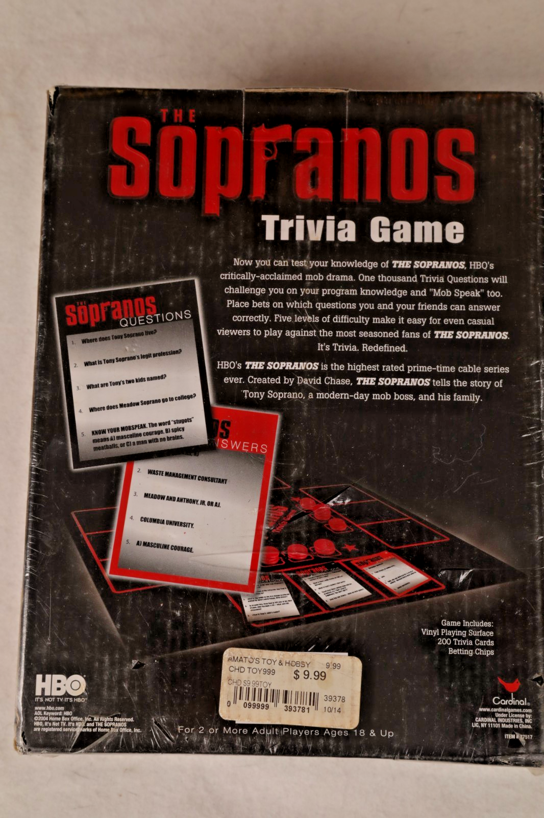 Description: Sopranos Trivia Game New SEALED. Box is sealed but the corners are worn. Terms and Conditions: We are a smoke free home, but do have a pet. I take pride in my sales and do my best to represent all items accurately as possible. I try to look over each item thoroughly but sometimes things could be missed. There are no refunds unless I grossly misrepresented something. Tag Sizes vary drastically from maker to maker and are highly unreliable. sale Payment: Payment due 3 days after auction has ended. Shipping: Your item will ship within 3 business days. Business days are Monday - Friday, 9:00 - 5:00 P.M. EST. Buyer agrees to pay all shipping, insurance, and handling charges. I