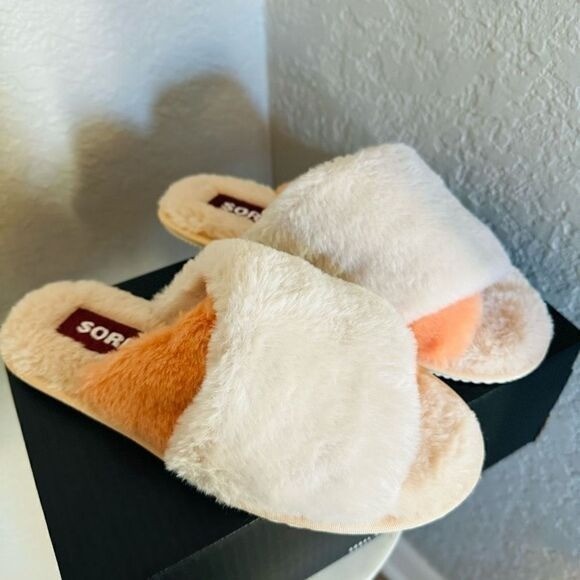 Sorel Go Mail Run Faux Fur Cotton Slippers, Cozy House Shoes , Cream, Size 9, NW