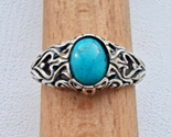 - SOUTHWESTERN 925 STERLING SILVER OVAL 8x6 mm.TURQUOISE SCROLL SWIRL RING SIZE 8