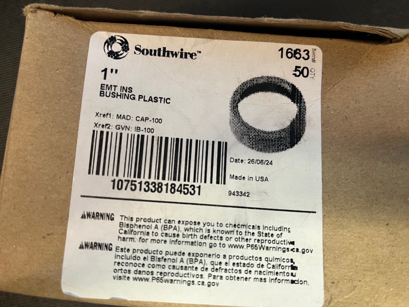 - Southwire 1" EMT Plastic Insulating Bushing Model 1663 49 PCS