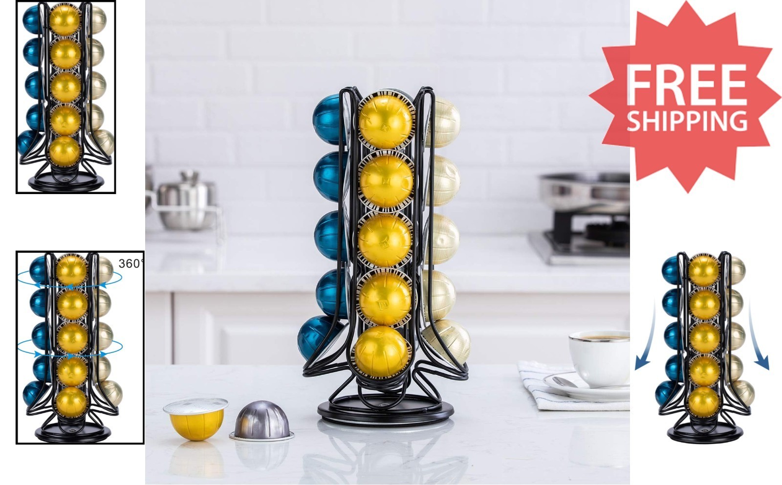 - Space-Saving 360-Degree Rotating Coffee Pod Carousel - Holds 20 Nespresso Pods