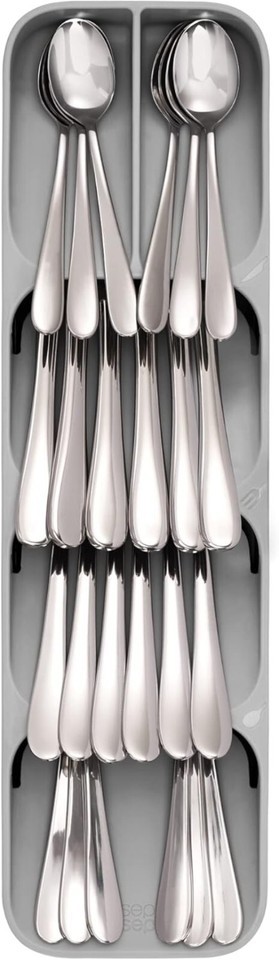 Features an ingenious layering system, condensing your silverware storage by more than half.