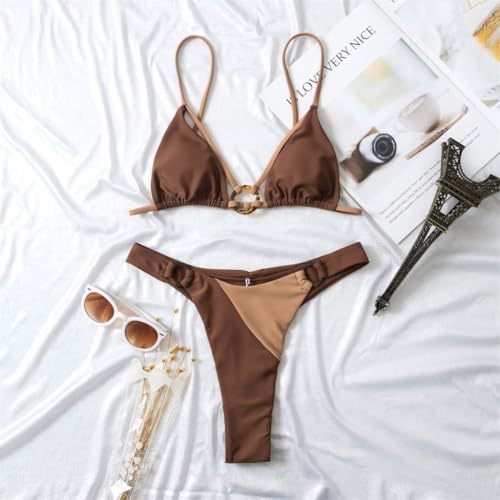 - Spaghetti Straps Sexy Bikini for Female Bathing Suit Patchwork Color Women's Hol