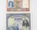 - Spain Peseta Notes (Lot of 2) 1931 500 Peseta VG+ P#84 1928 1000 Peseta F+ P#78a