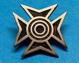 Many militia organizations allowed highly qualified shooters to wear collar buttons in the shape of this sharpshooter?s cross. In the Massachusetts militia, for example, qualified officers could wear this cross with black enamels, while distinguished marksmen wore these same crosses in red enamels. This Sharpshooter button has a single tine or staple like prong that could be inserted through the collar and then bent over. Nice original, seldom seen!