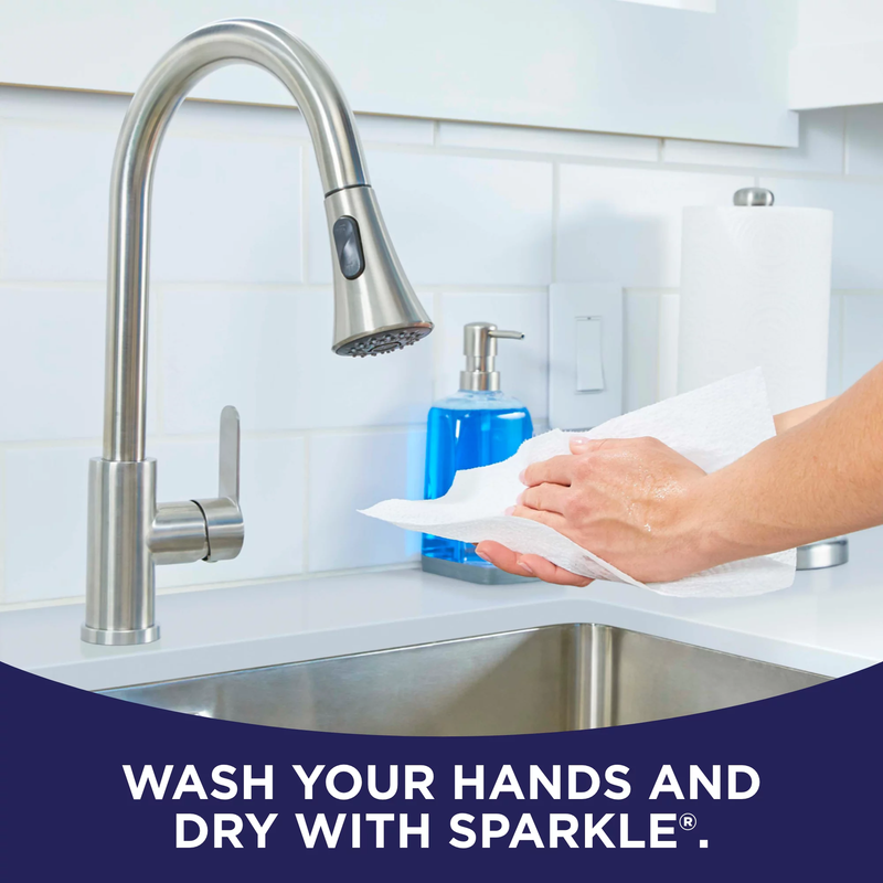 Sparkle Pick-A-Size Paper Towels are strong for everyday messes! So go ahead, reach for a full or half sheet to handle life's everyday twists and turns-from unavoidable messes and spills to last-minute art projects and all the routine cleanups in between. With Sparkle Kitchen Paper Towels on hand, you'll be prepared for whatever comes your way at an affordable price to boot! Sparkle Pick-A-Size Paper Towels with Thirst Pockets are designed with a perforation in each sheet so you can choose between a full size or half size sheet for your everyday tasks. Each Double Roll contains 110 2 ply paper towel sheets. Sparkle Paper Towels are just right for cleaning up your everyday messes without cleaning out your piggy bank. Whether you need to wipe up a mess in your kitchen, take care of small spills, shine up your windows and mirrors or wipe your hands or face clean, Sparkle Pick-A-Size Paper Towels allow you to spend less on your everyday messes.