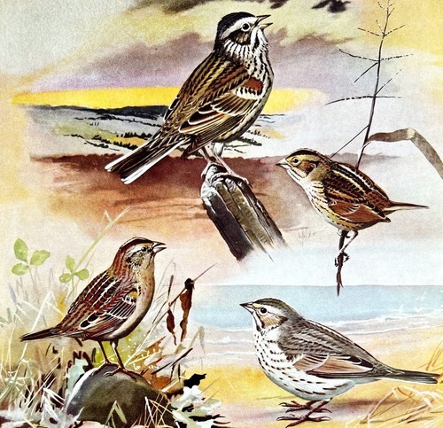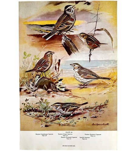 Sparrow Types And Variety 1955 Plate Print Birds Of America Nature Art DWEE31