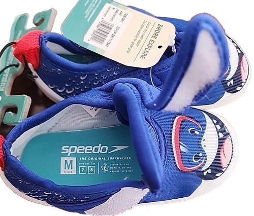 This Sale is for One (1) Pair of Speedo Water Shoes Kids' Size Medium 7/8 Bubble Snorkel Multicolored Quick dry mesh upper Pull on shoes ~ Velcro closure on side Flexible ~ durable outsole Closed toe Lightweight design These water shoes are new with tags Please view photos for a good description of these water shoes Thank you!