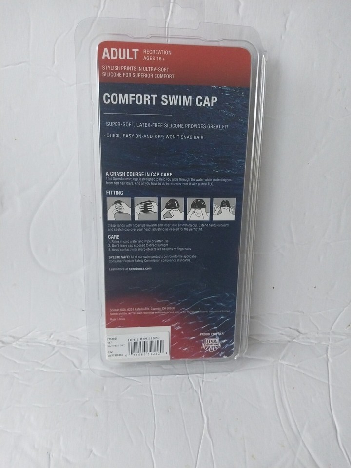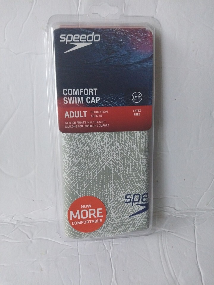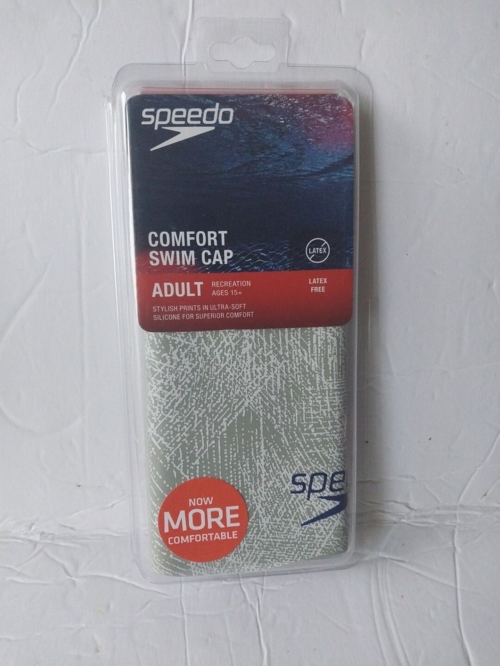 - Speedo Patterned Comfort Swim Cap Adult Latex Free Elastomeric - NEW Grey White